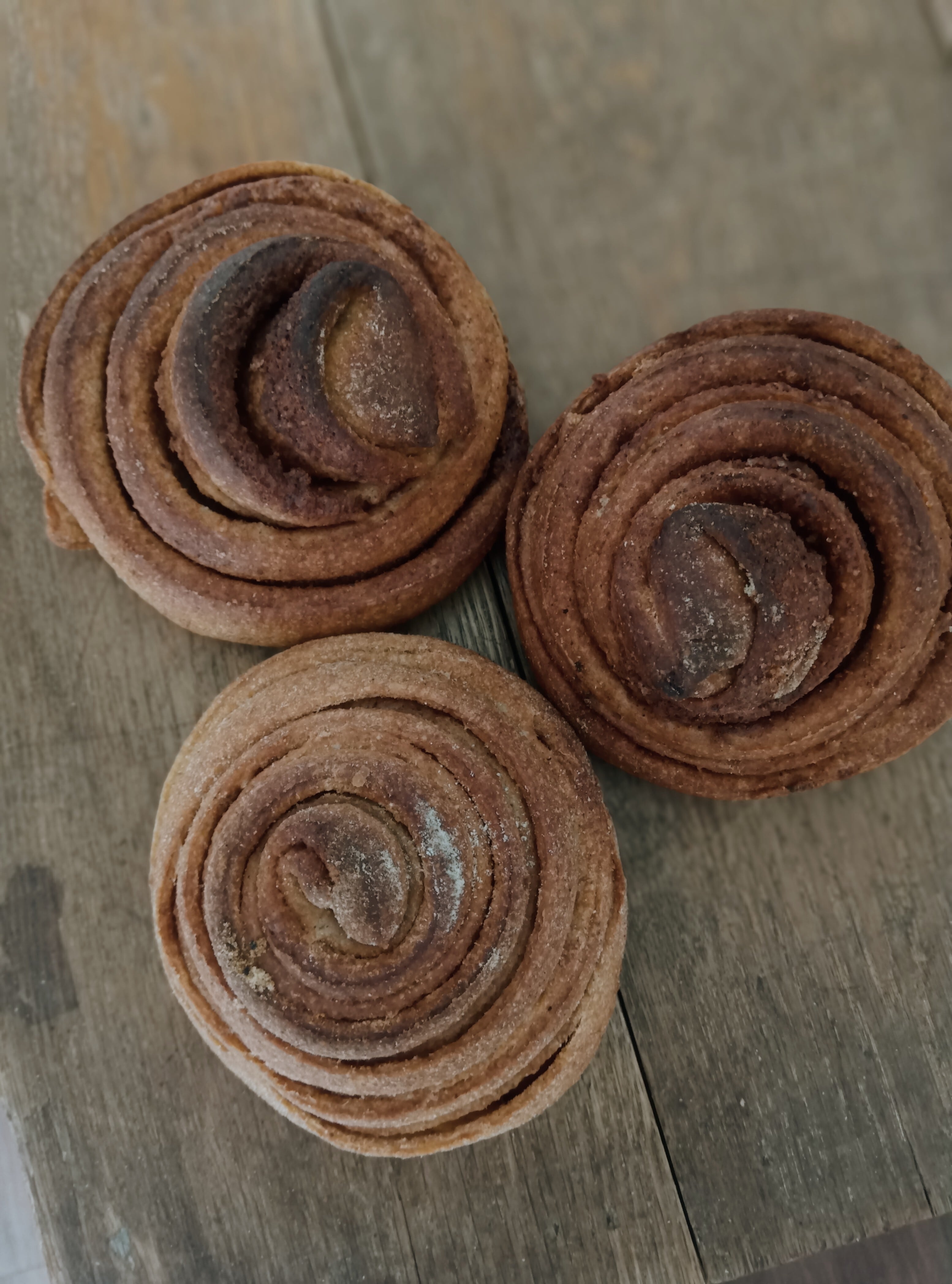 北海道産有機古代小麦、北海道産有機全粒粉、天日塩、発酵種(北海道産有機ライ麦使用)、発酵バター、放牧牛乳、喜界島粗糖、有機シナモン、カルダモン